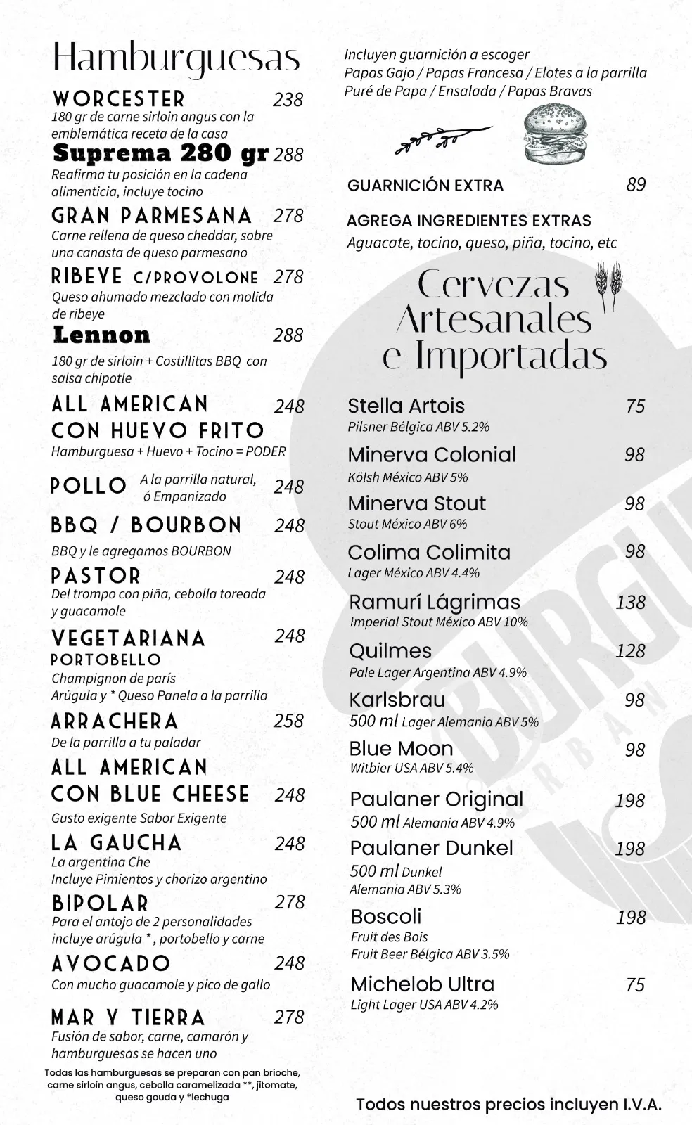 Descubre el menú de Burgués Urban Grill Celaya y disfruta de parrilla urbana especializada en hamburguesas gourmet, cortes de carne y barra de destilados y cervezas importadas.